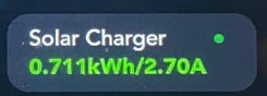 - “Solar” and Kw combination, it shows you how much power you are getting into the system in Kw at real-time (not necessarily charged into the battery, the van is using the power at the same time)