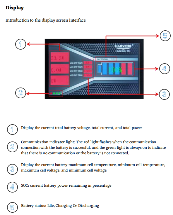 3. Harvok® Monitor (2023 Models Onwards) – If you have access to this screen, it is dedicated to monitoring the battery. Therefore, you should read the battery status from this screen instead of the MCK (Mobile Control Kit).